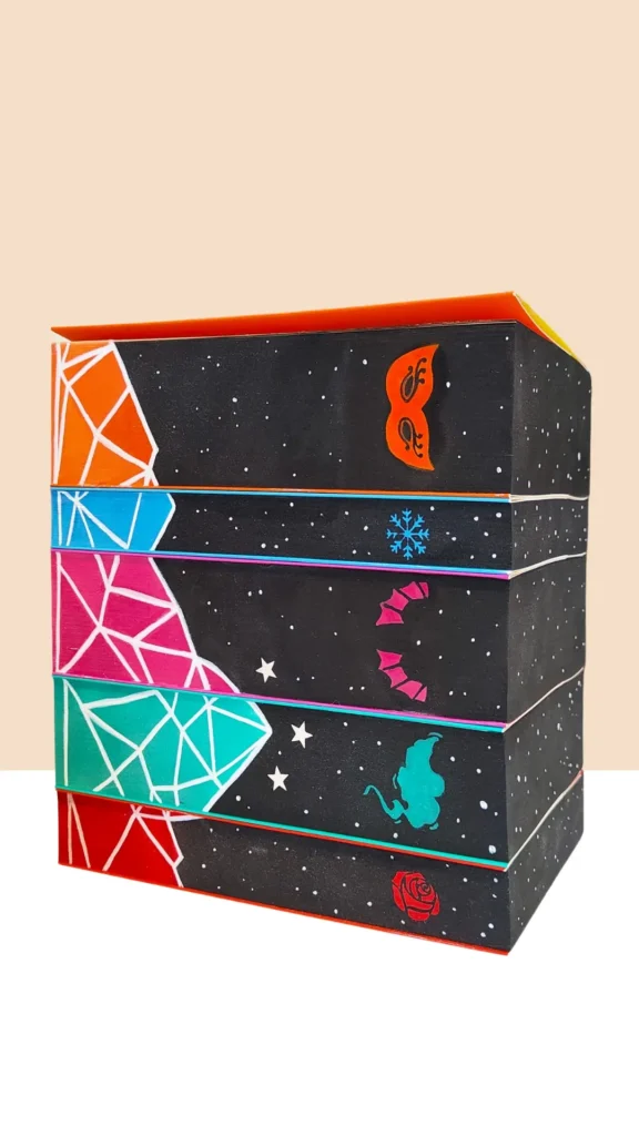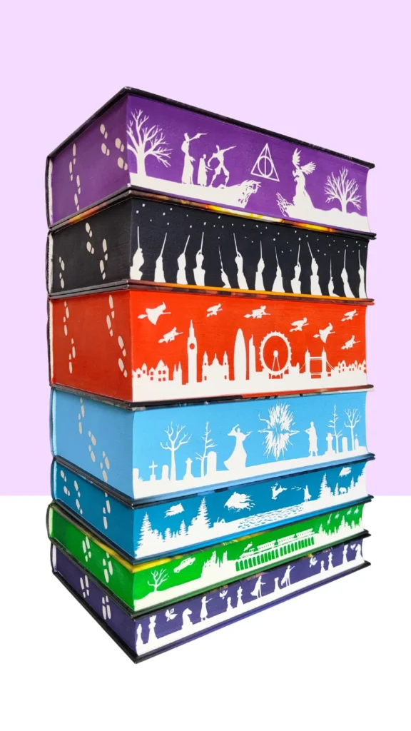 Sprawdź, jakie efekty uzyskałam podczas malowania serii Harry Potter, Szklany Tron czy Igrzyska Śmierci. Na przykładzie takich książek jak ,,Wampirze Cesarstwo” czy ,,Romans tylko na lato” zauważysz też, jak pięknie na brzegu książki wygląda klimatyczny krajobraz lub wzór stanowiący przedłużenie ilustracji z okładki.
